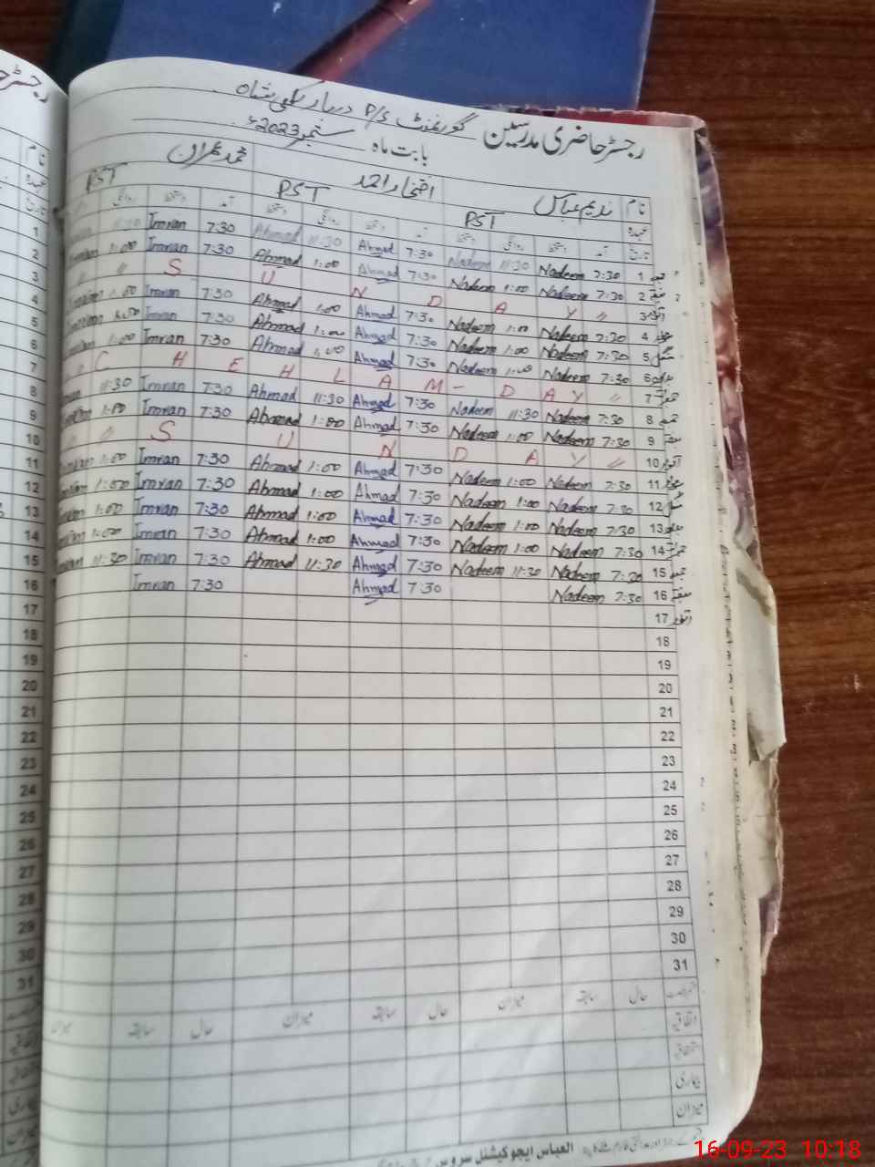 | CNIC | Full Name | Designation | R/C | Absence During Last Calender Month |