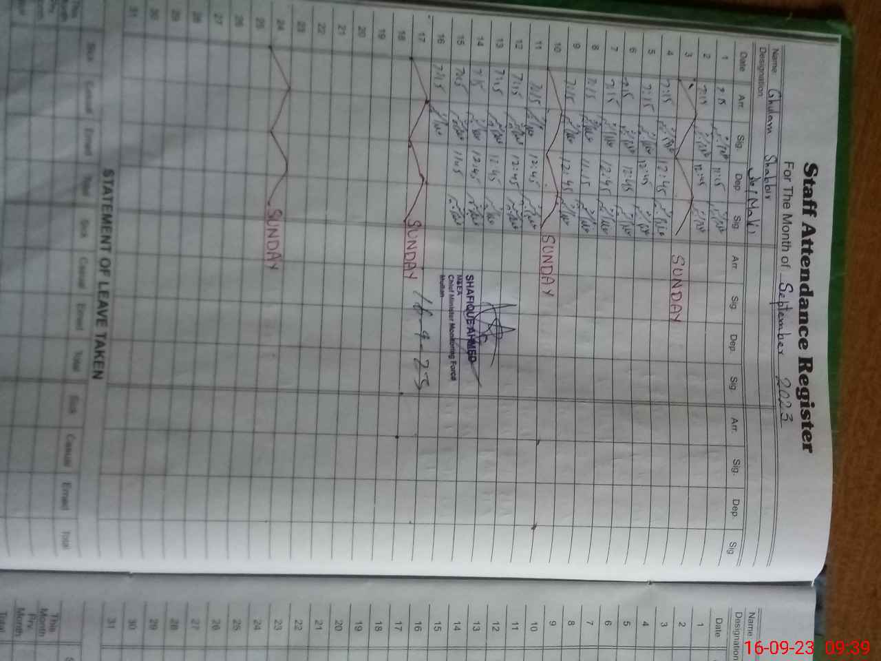 | Monitoring Date: 16-09-2023 | Start Time: 16-09-2023 09:35 AM | End Time: 16-09-2023 10:23 AM | Name of MEA: SH**** AH**** | |