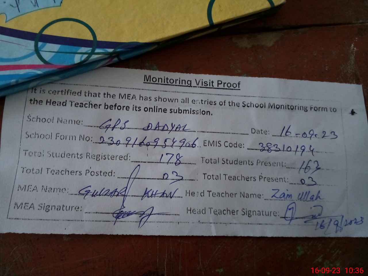 | EMIS Code: 38310194 | Name of School: GPS DADY WAL | |||