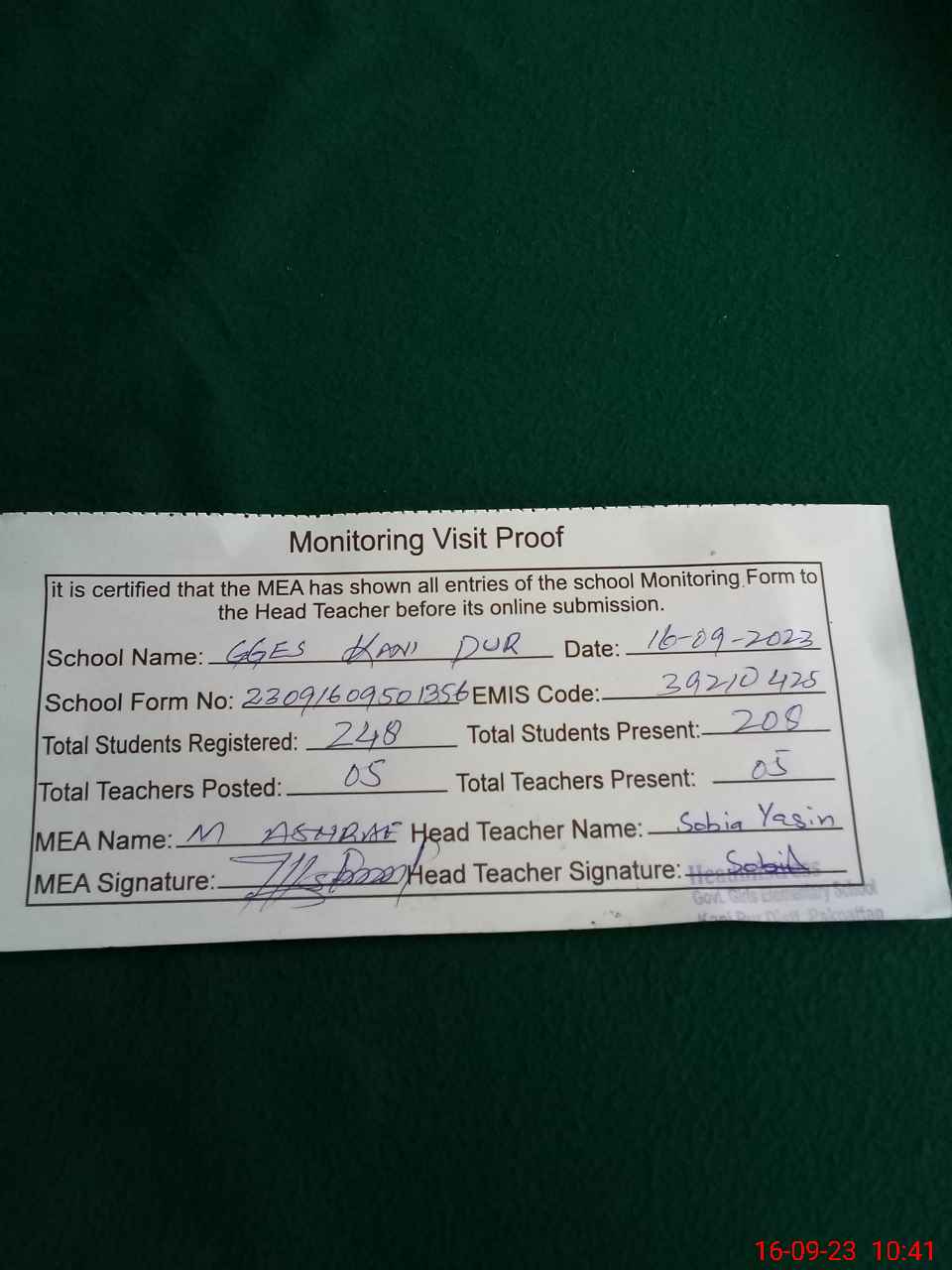 | EMIS Code: 39210425 | Name of School: GGES KANI PUR | |||