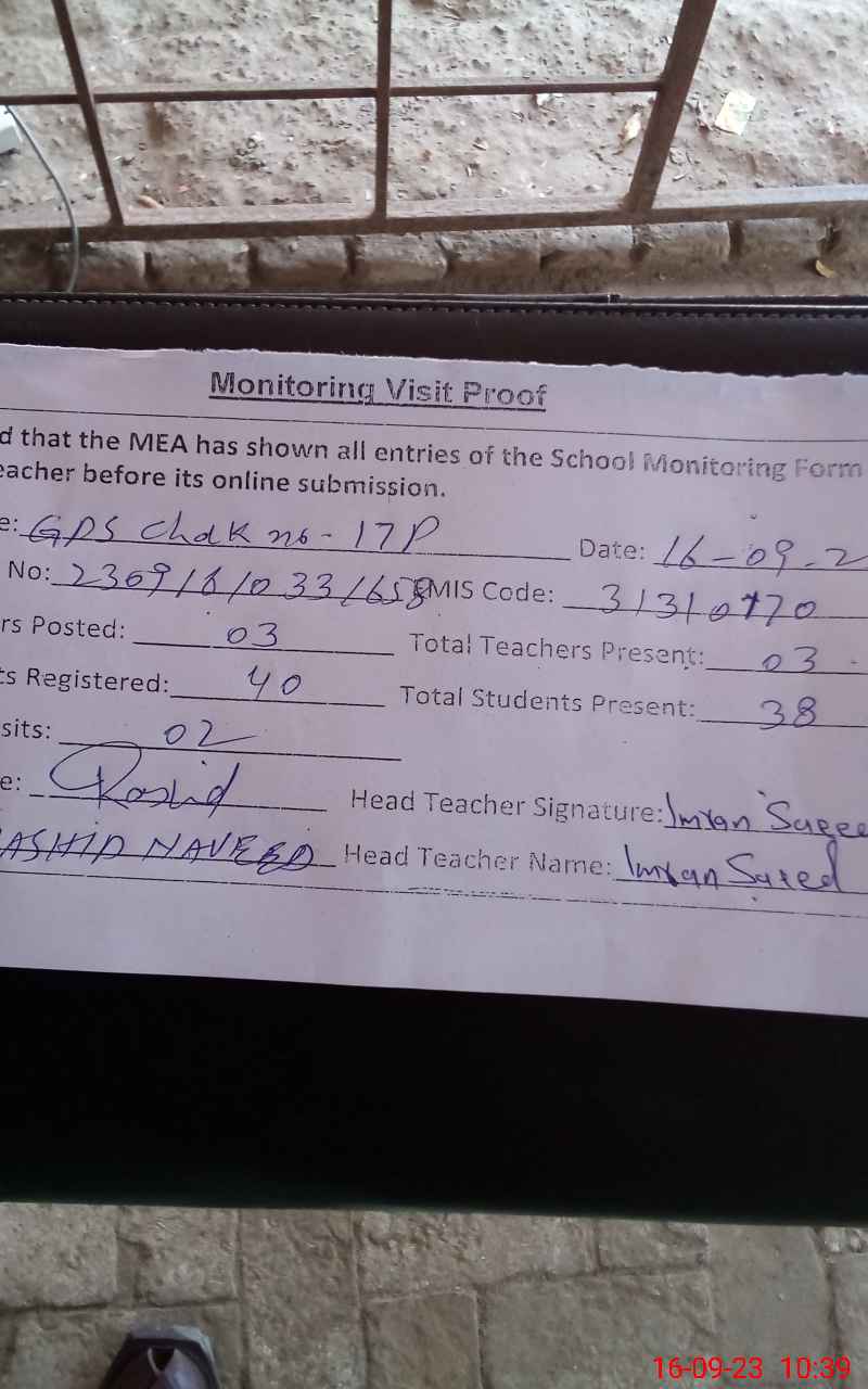 | EMIS Code: 31310170 | Name of School: GPS CHAK NO 17/P KHANPUR | |||