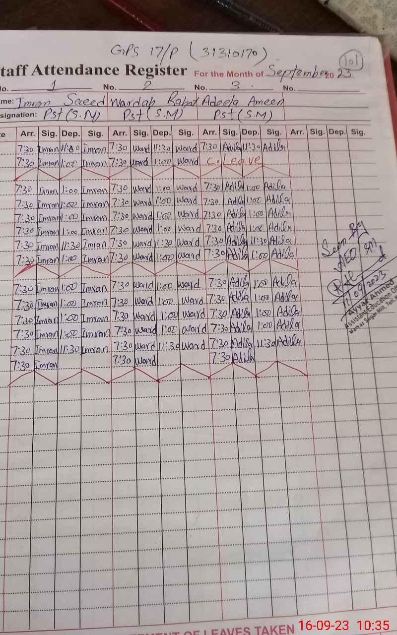 | Name: Im**** Sa**** Designation: (School Headmaster's/Headmistress's) PST Phone/Cell Number: 03**** |
