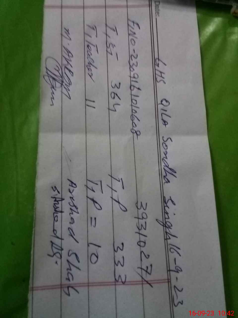 | EMIS Code: 39310271 | Name of School: GHS QILA SONDHA SINGH | |||