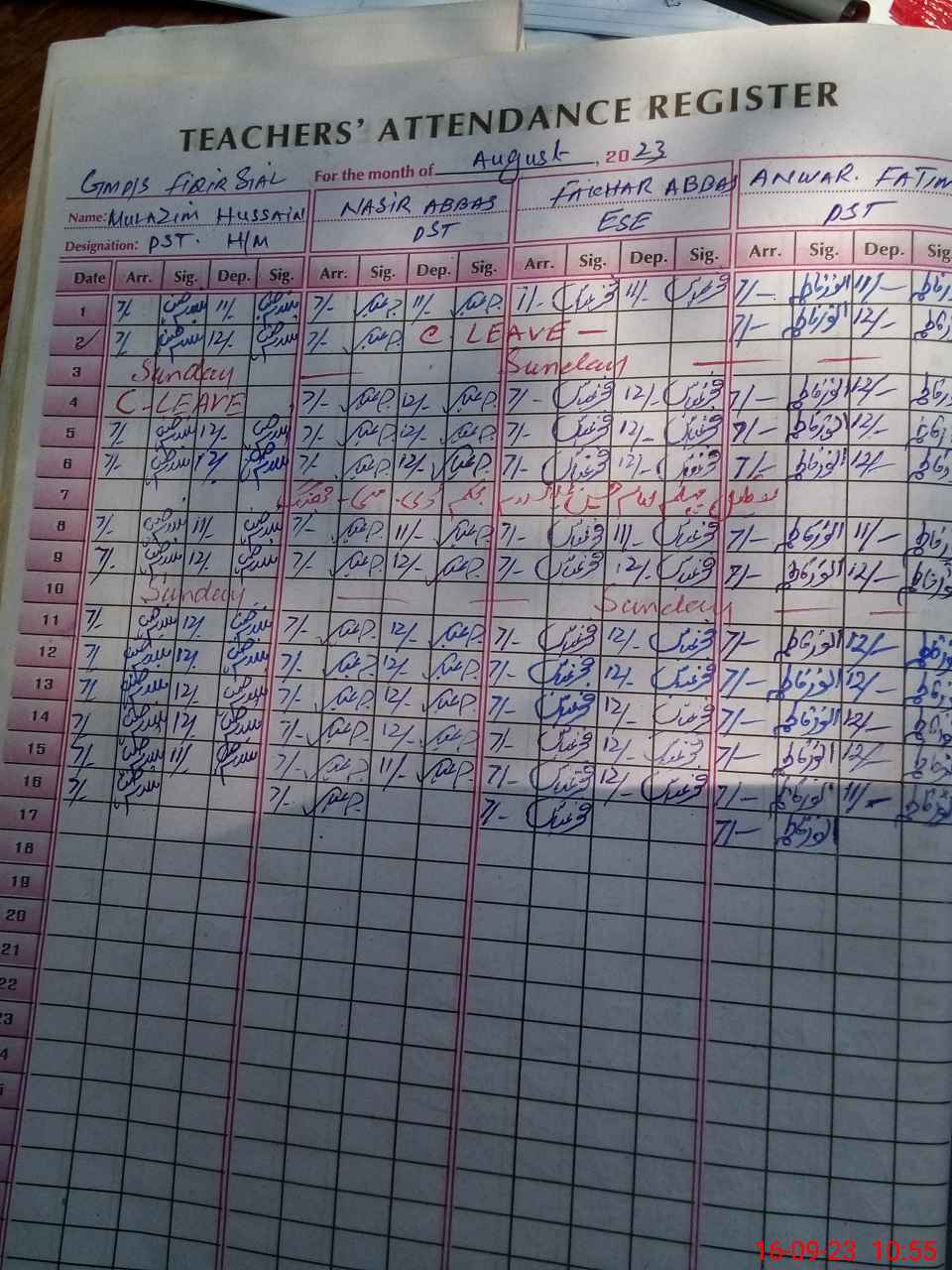 | Name: FA**** AB**** Designation: (School Headmaster's/Headmistress's) PST Phone/Cell Number: 03**** |