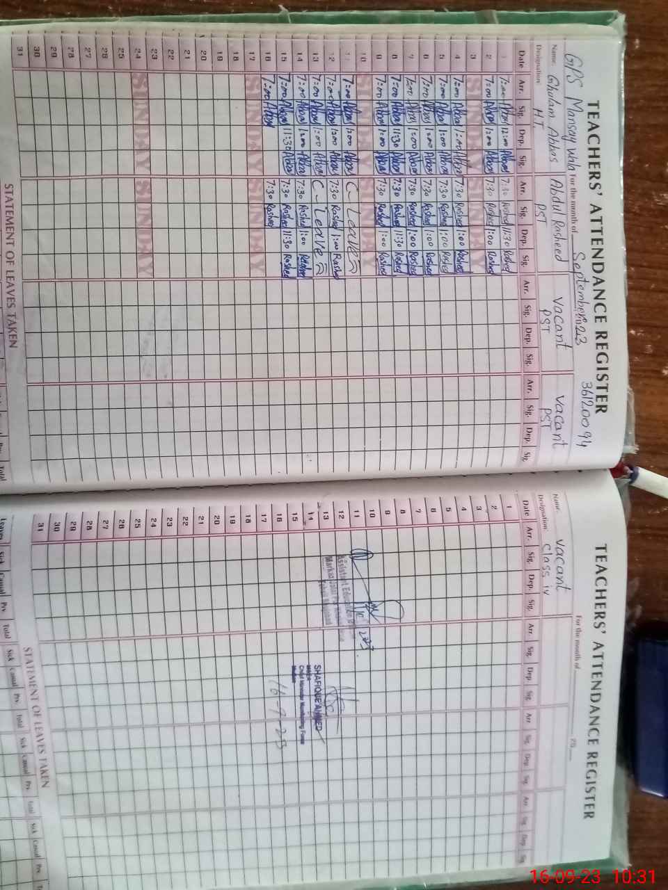| Name: GH**** AB**** Designation: (School Headmaster's/Headmistress's) PST Phone/Cell Number: 03**** |
