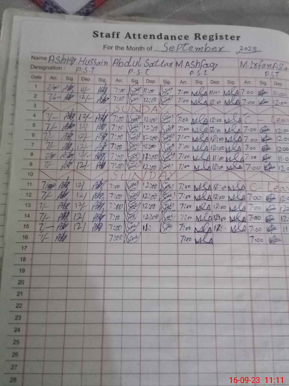 | Name: AS**** HU**** Designation: (School Headmaster's/Headmistress's) PST Phone/Cell Number: 03**** |