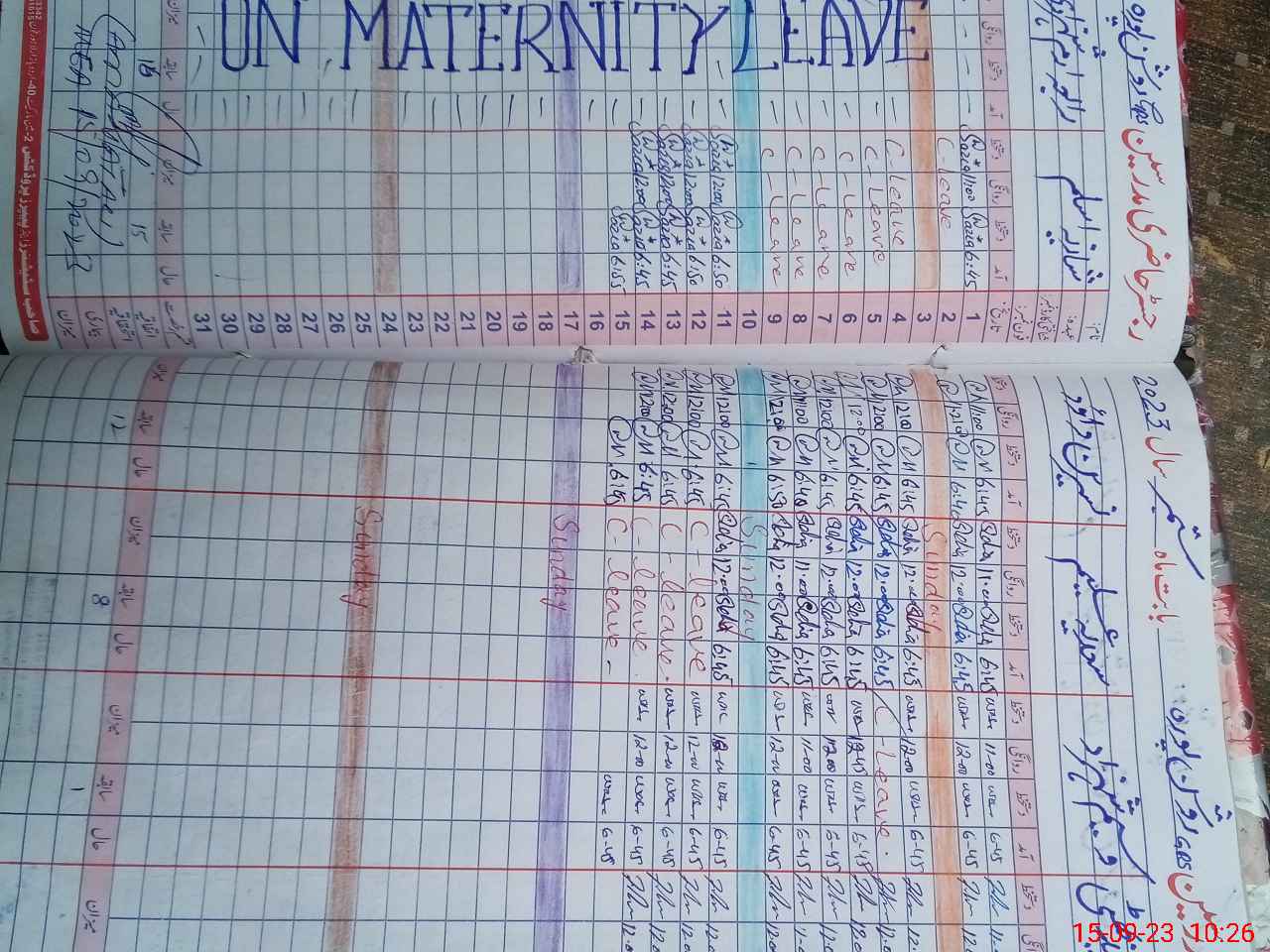 | Leave | Duty | Absent | Maternity | Medical | Ex- Pak |