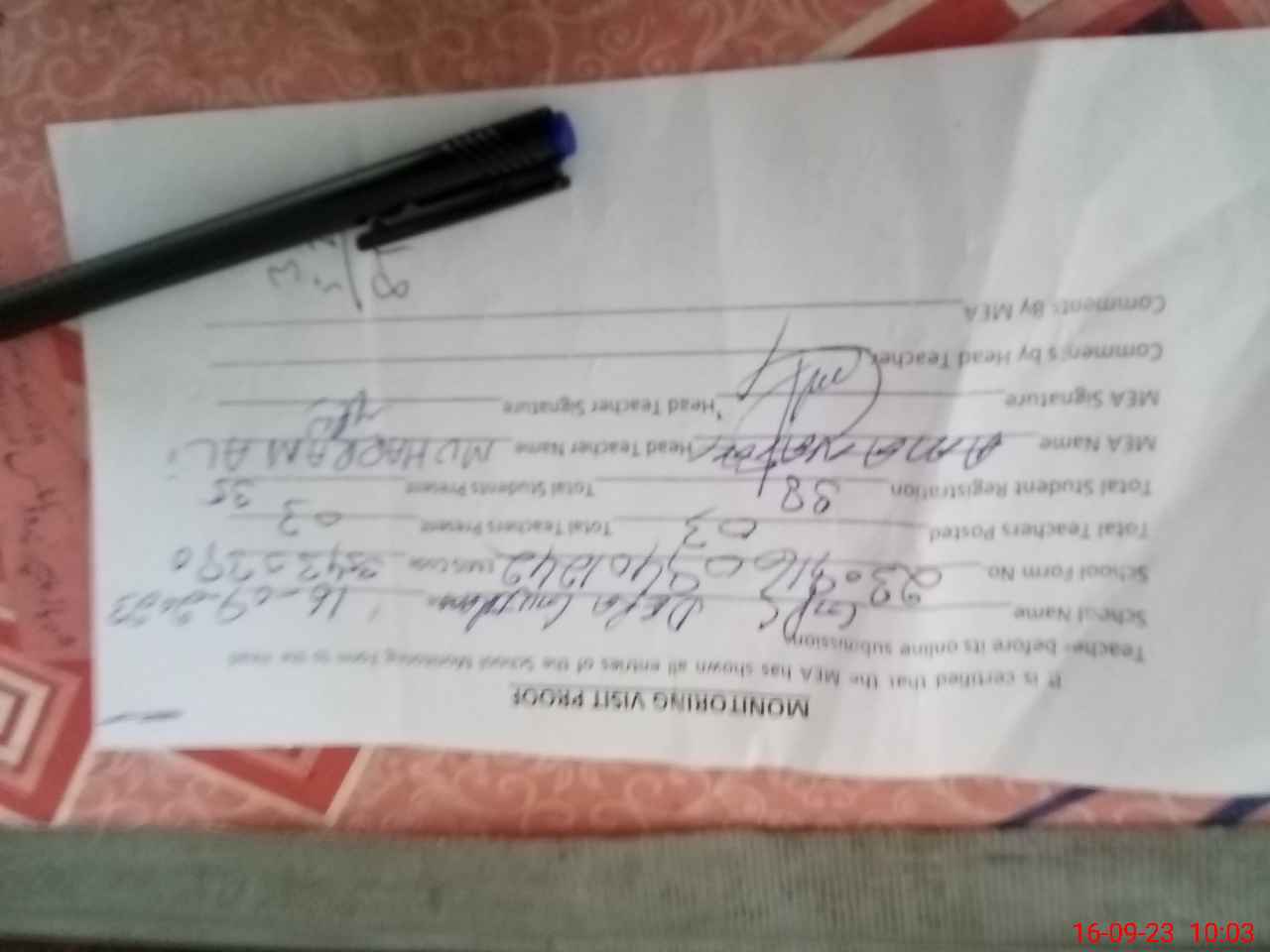 | Name: MU**** AL**** Designation: (School Headmaster's/Headmistress's) PST Phone/Cell Number: 03**** |
