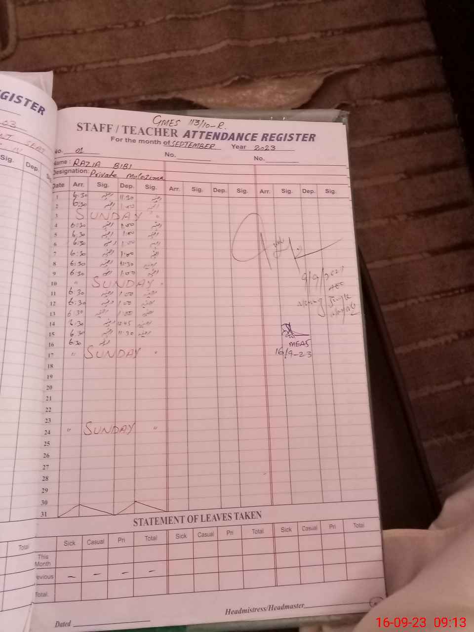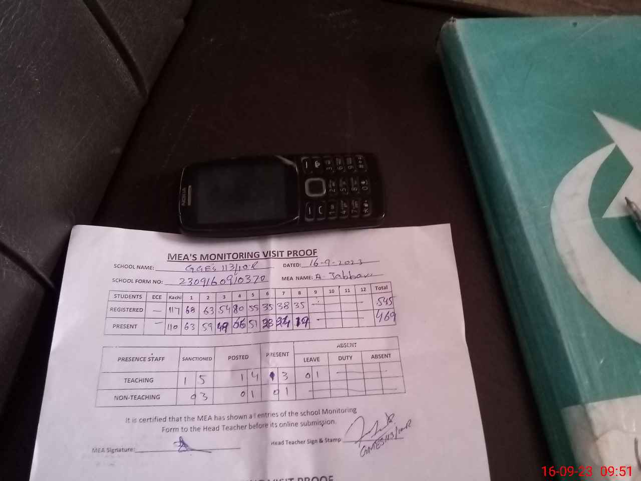 | Attendance Register | Head Teacher | MEA with School | Visit Proof |