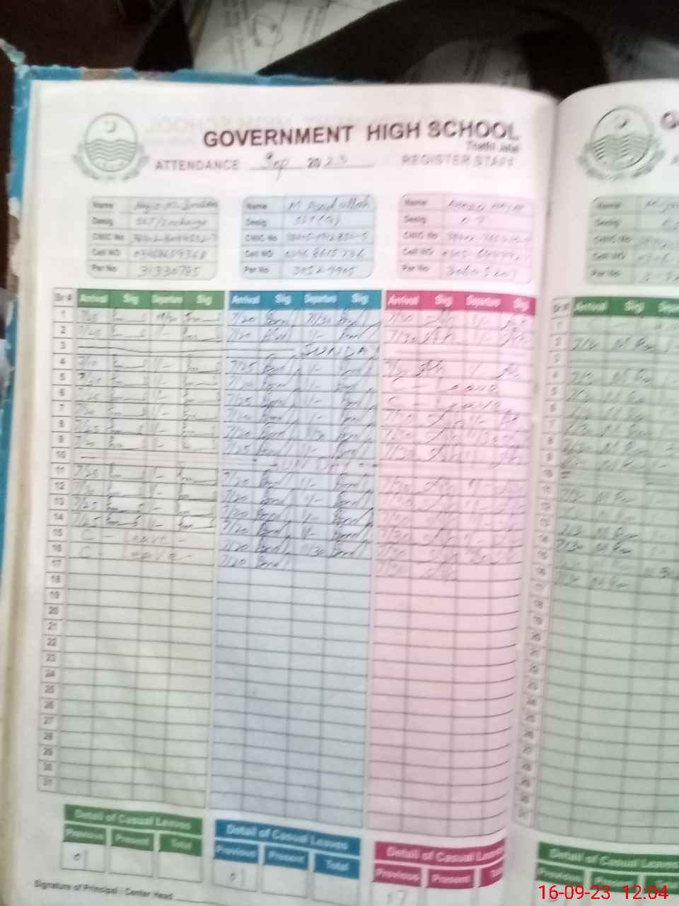 | Name: HA**** MU**** IM**** Designation: (School Headmaster's/Headmistress's) SST SCIENCE Phone/Cell Number: 03**** |