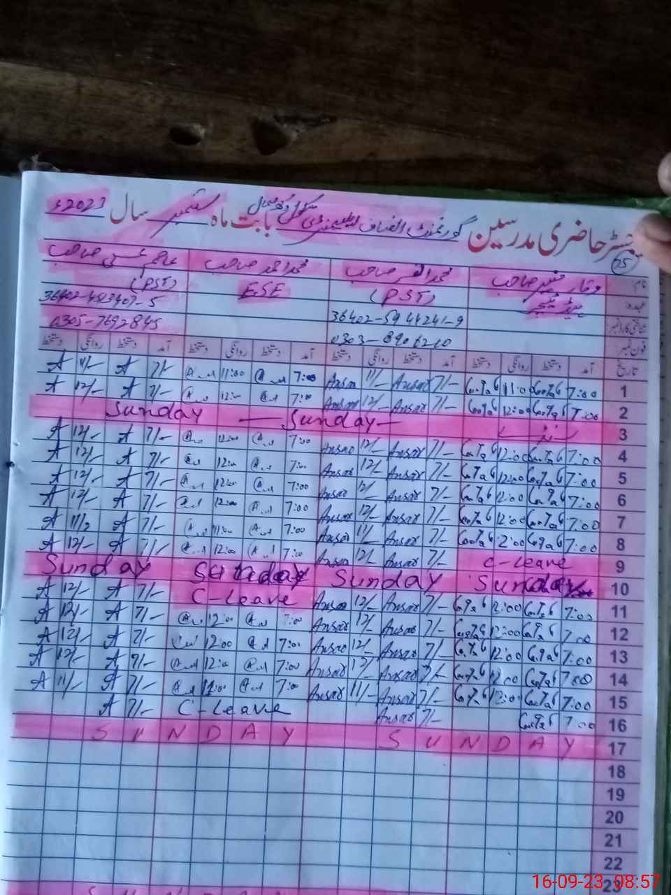 | CNIC | Full Name | Designation | R/C | Absence During Last Calender Month |