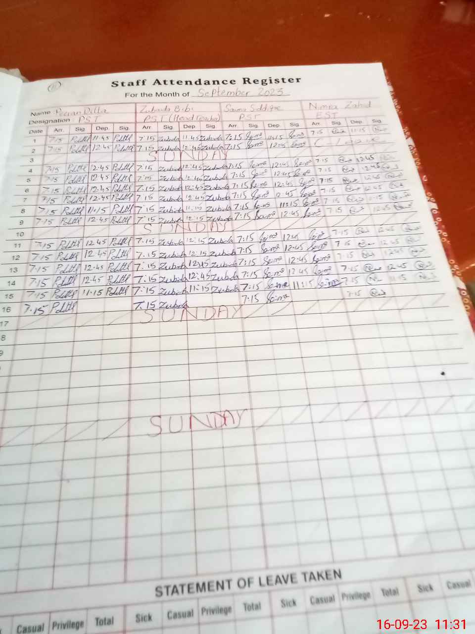 | Leave | Duty | Absent | Maternity | Medical | Ex- Pak |