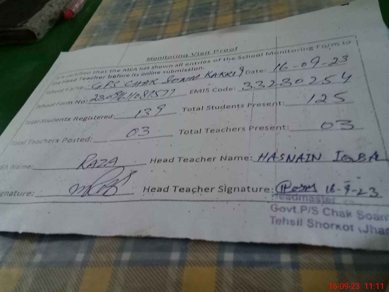 | Name: Ha**** Iq**** Designation: (School Headmaster's/Headmistress's) PST Phone/Cell Number: 03**** |
