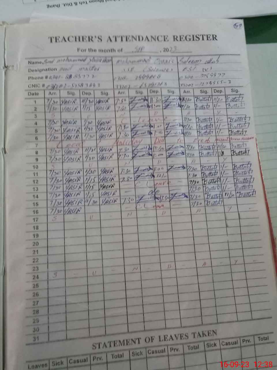 | Name: Sy**** Mu**** Ya**** Ra**** Designation: (School Headmaster's/Headmistress's) HM Phone/Cell Number: 03**** |