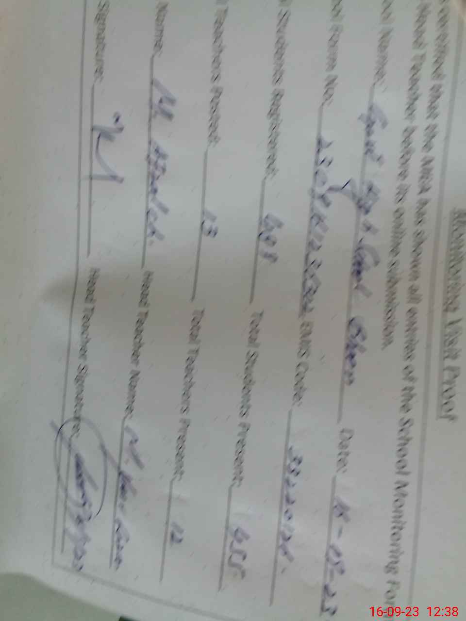 | Attendance Register | Head Teacher | MEA with School | Visit Proof |