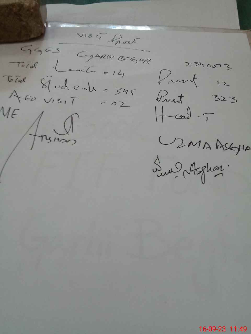 | Attendance Register | Head Teacher | MEA with School | Visit Proof |