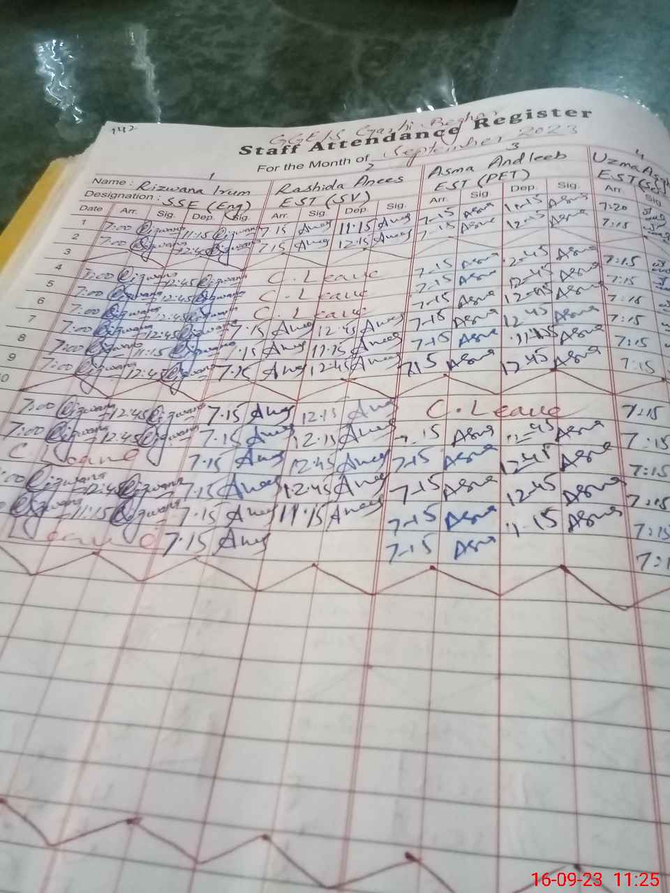 | Leave | Duty | Absent | Maternity | Medical | Ex- Pak |