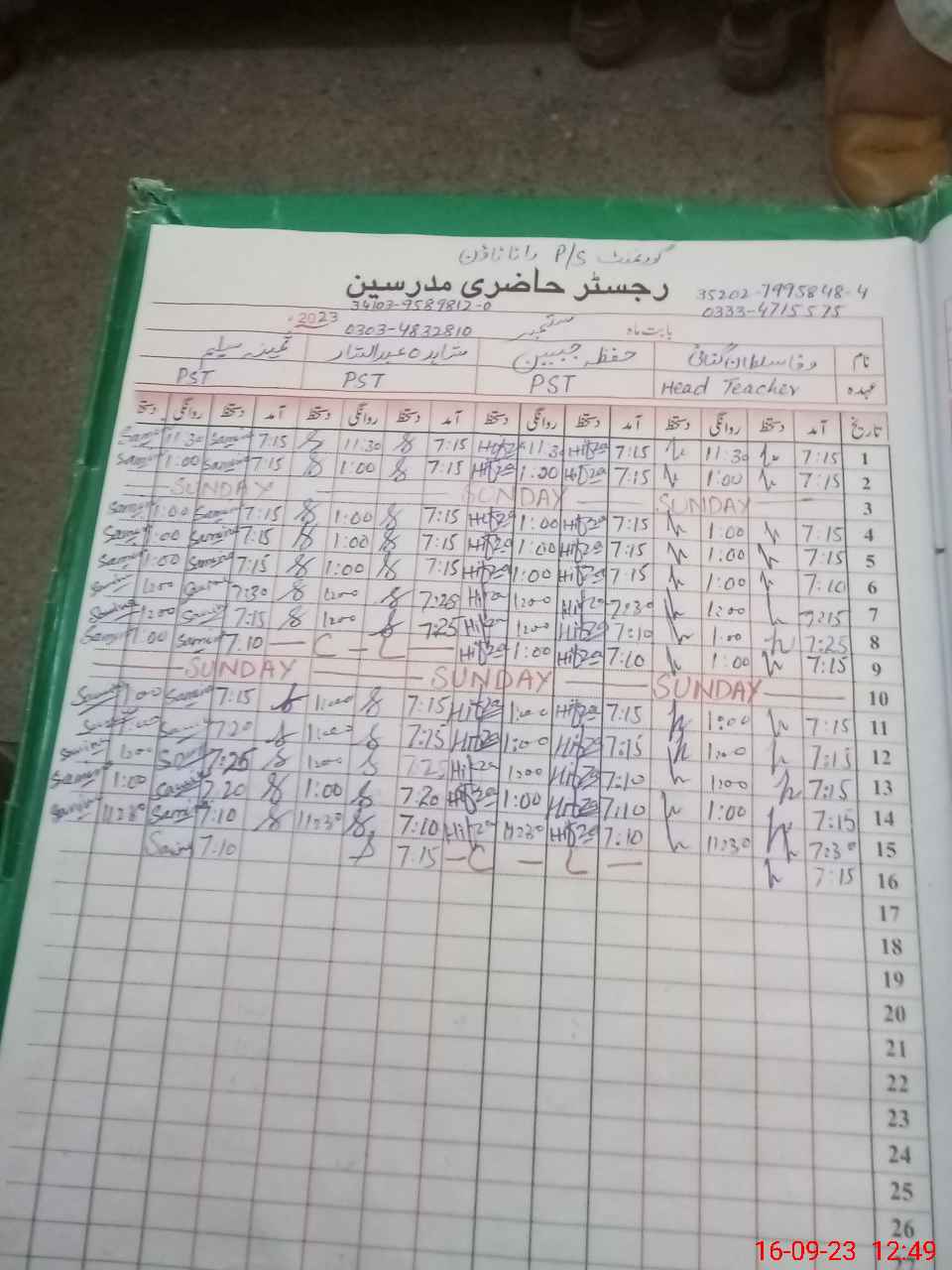 | Name: Wa**** su**** Designation: (School Headmaster's/Headmistress's) PTC/JV Phone/Cell Number: 03**** |