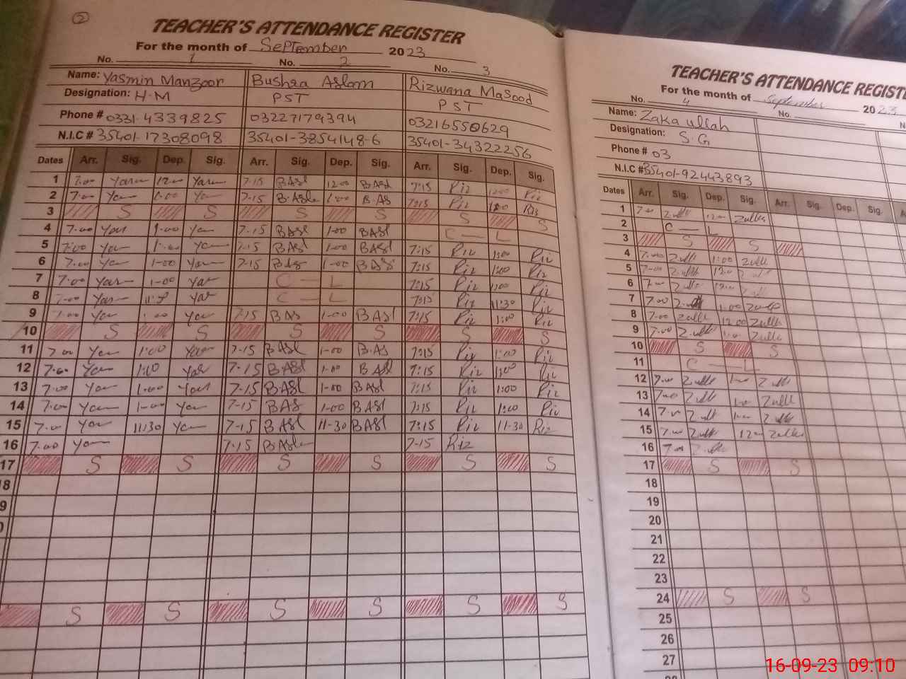 | CNIC | Full Name | Designation | R/C | Absence During Last Calender Month |