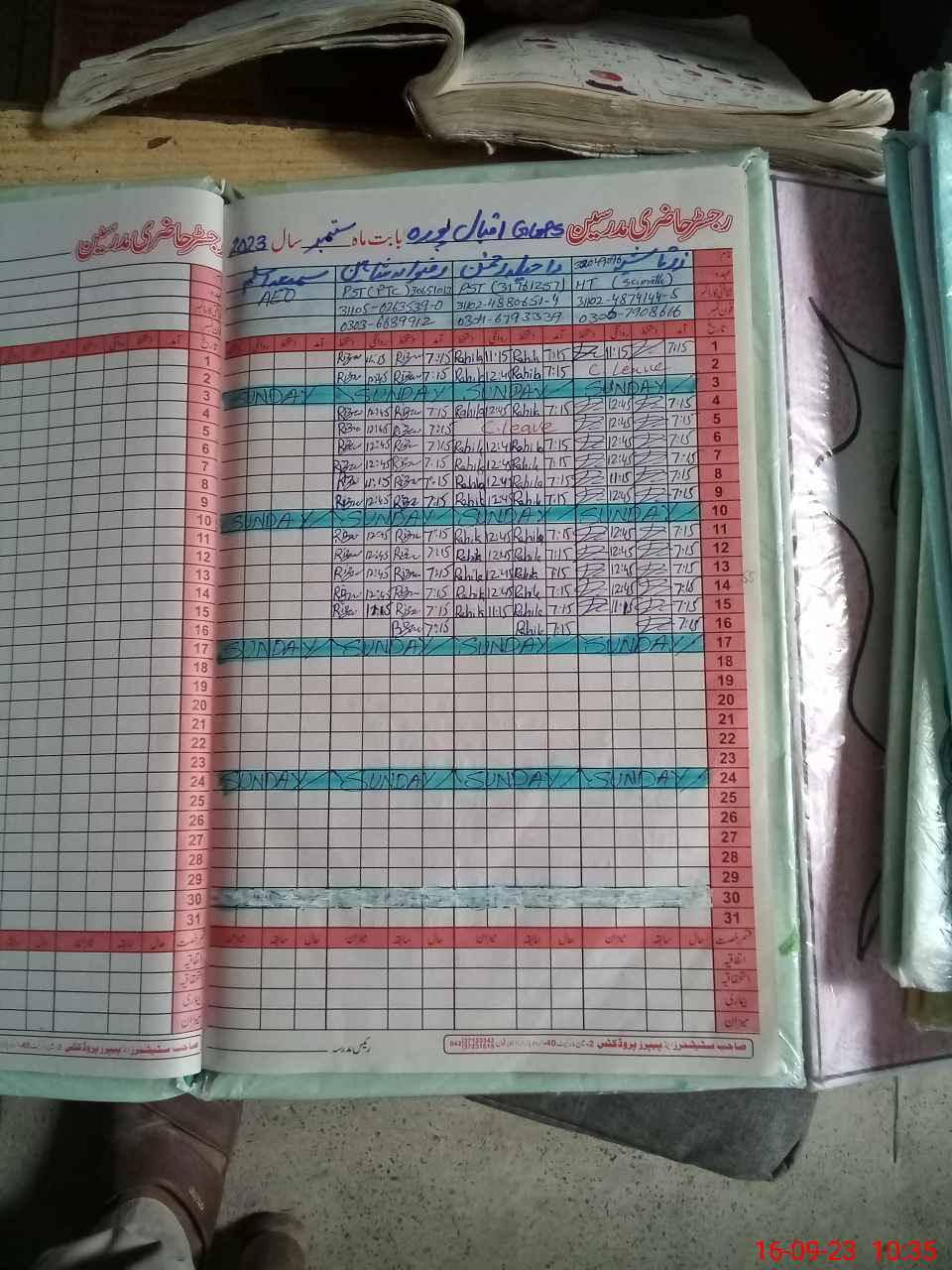| CNIC | Full Name | Designation | R/C | Absence During Last Calender Month |