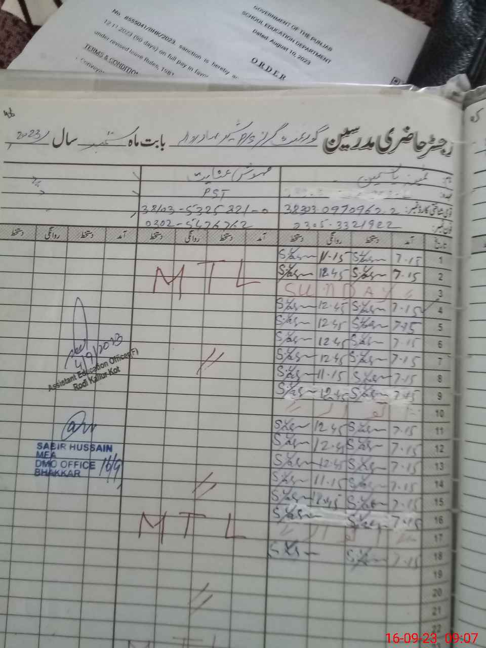 | Name: Me**** In**** Designation: (School Headmaster's/Headmistress's) PTC/JV Phone/Cell Number: 03**** |
