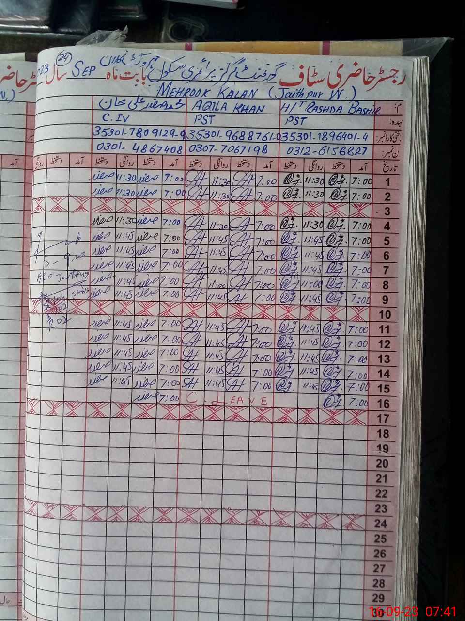 | CNIC | Full Name | Designation | R/C | Absence During Last Calender Month |
