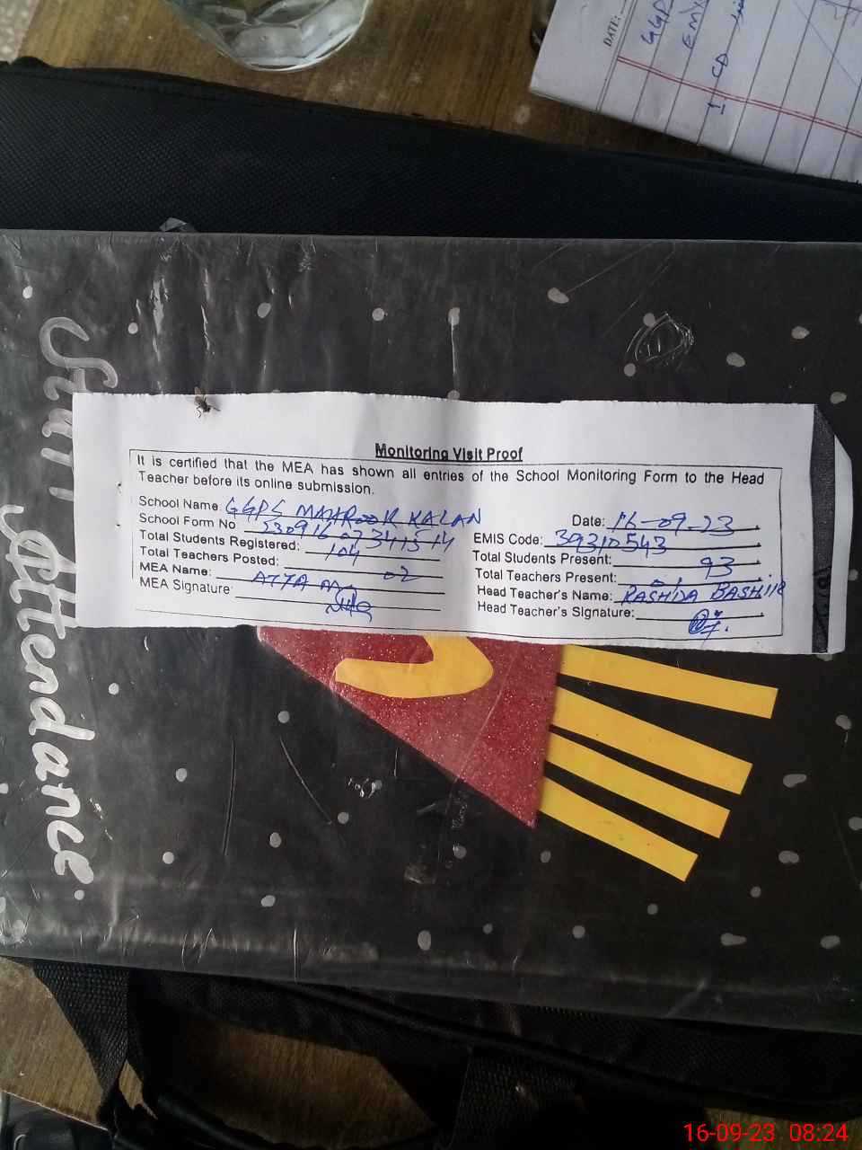 | Attendance Register | Head Teacher | MEA with School | Visit Proof |