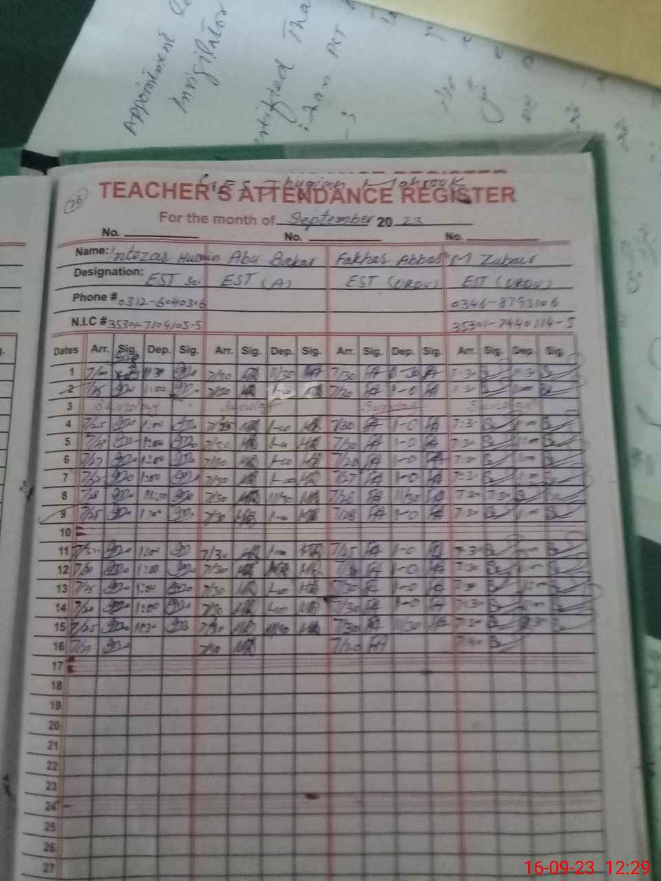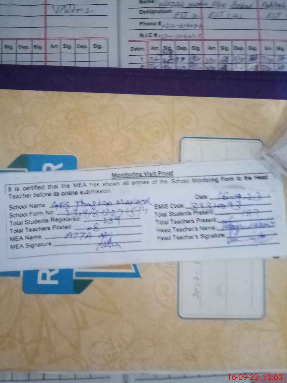 | Name: IN**** HU**** Designation: (School Headmaster's/Headmistress's) S.ESE SCI Phone/Cell Number: 03**** |