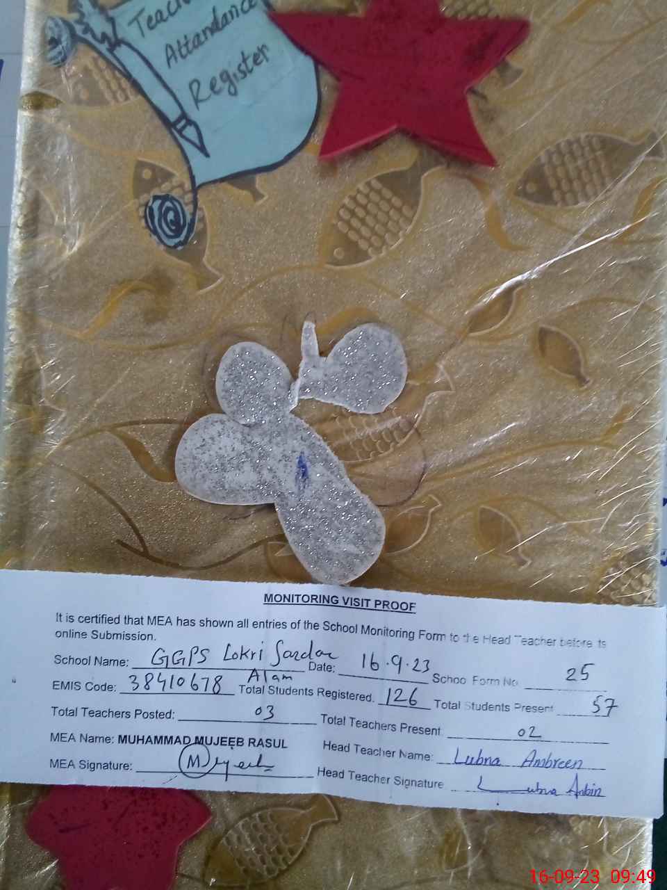 | Attendance Register | Head Teacher | MEA with School | Visit Proof |