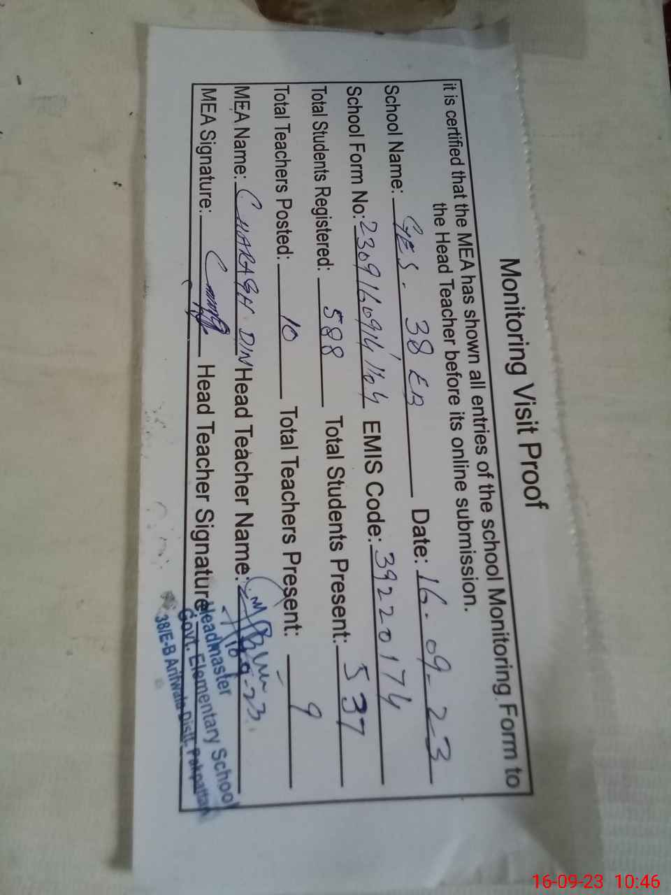 | EMIS Code: 39220174 | Name of School: GES 38 EB | |||