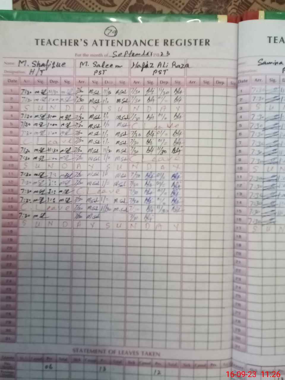 | Name: Mo**** SH**** Designation: (School Headmaster's/Headmistress's) PST/PTC/JV Phone/Cell Number: 03**** |