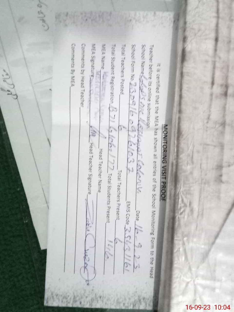 | Certified that this School was Inspected by the Undersigned MEA/DMO Today and the Information Stated Above is as Per Record. | |||||