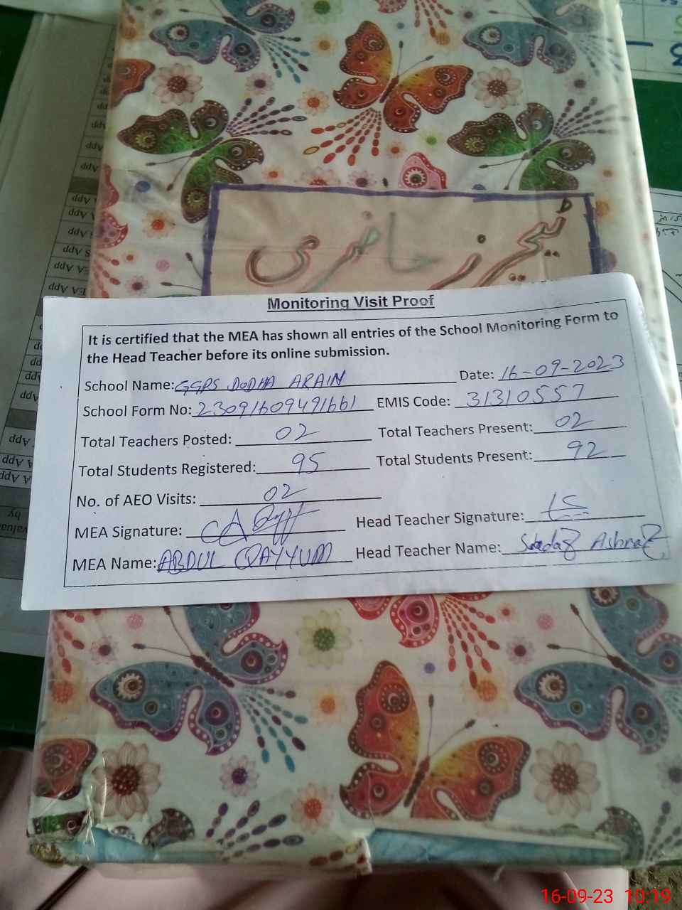 | EMIS Code: 31310557 | Name of School: GGPS DODAH ARIAN | |||