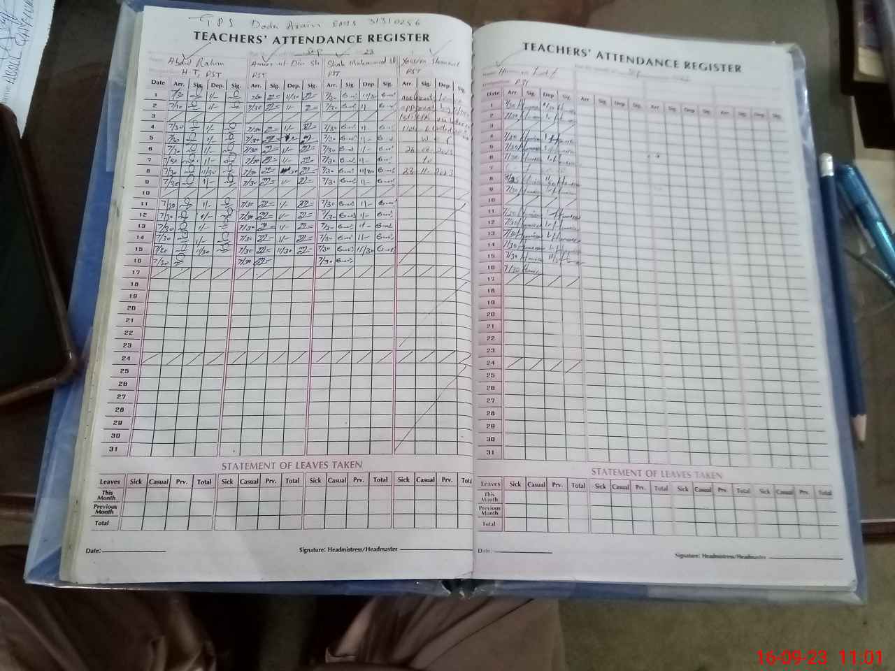 | Name: AB**** RA**** GH**** Designation: (School Headmaster's/Headmistress's) PST Phone/Cell Number: 03**** |
