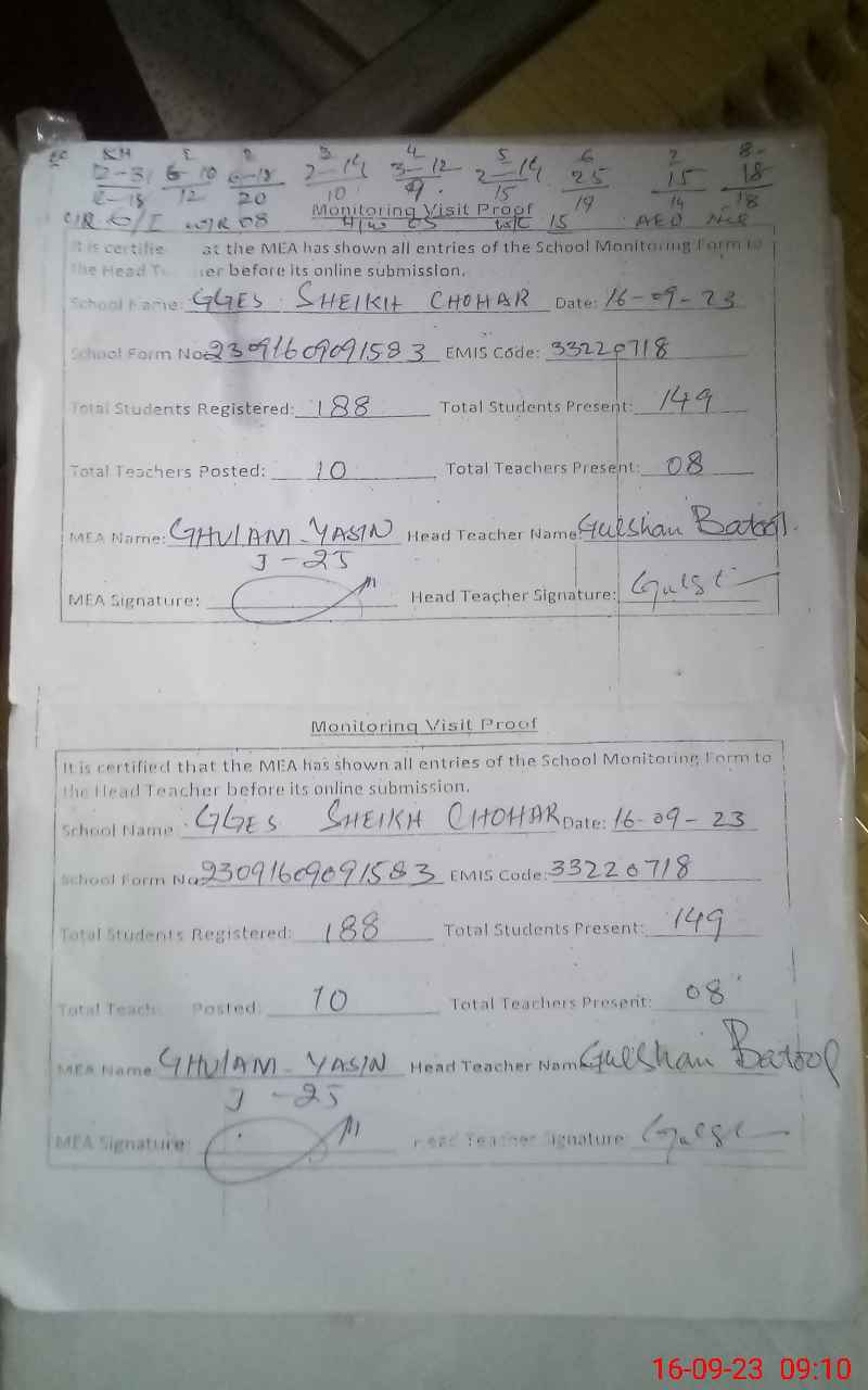 | EMIS Code: 33220718 | Name of School: GGES SHAIKH CHOHAR | |||