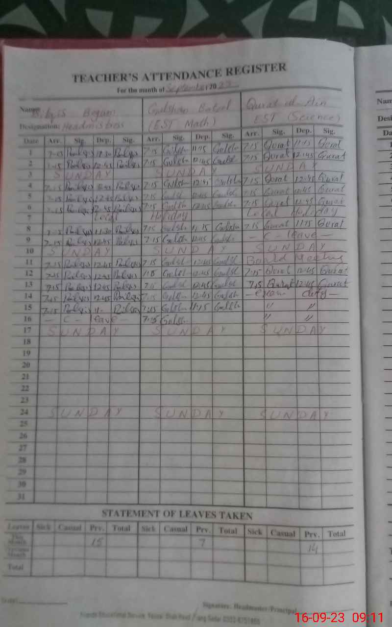 | Attendance Register | Head Teacher | MEA with School | Visit Proof |