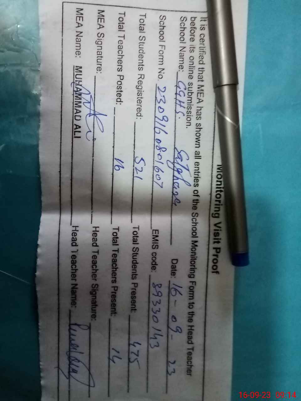 | EMIS Code: 39330143 | Name of School: GGHS SATGHARA | |||