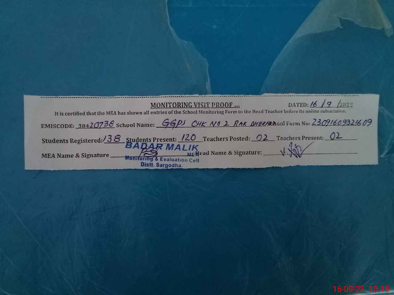 | EMIS Code: 38420738 | Name of School: GGPS CHAK NO.2 RAKH DHAREMA | |||