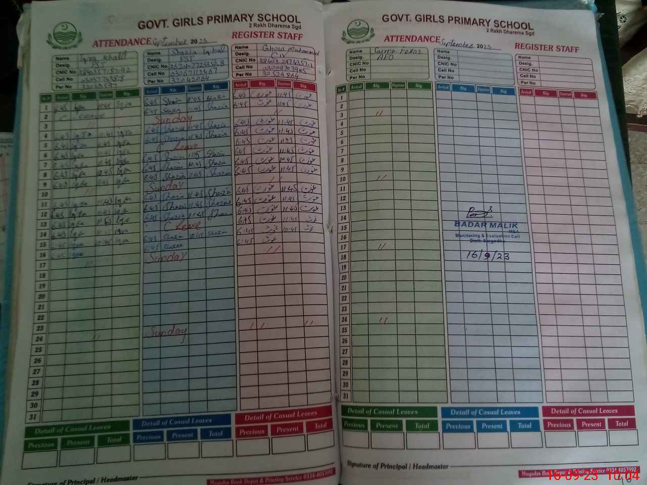 | Name: IQ**** KH**** Designation: (School Headmaster's/Headmistress's) PST Phone/Cell Number: 03**** |
