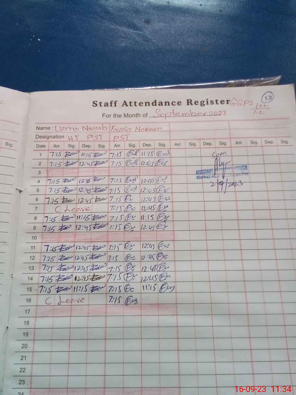 | Name: Uz**** Na**** Designation: (School Headmaster's/Headmistress's) PST Phone/Cell Number: 03**** |