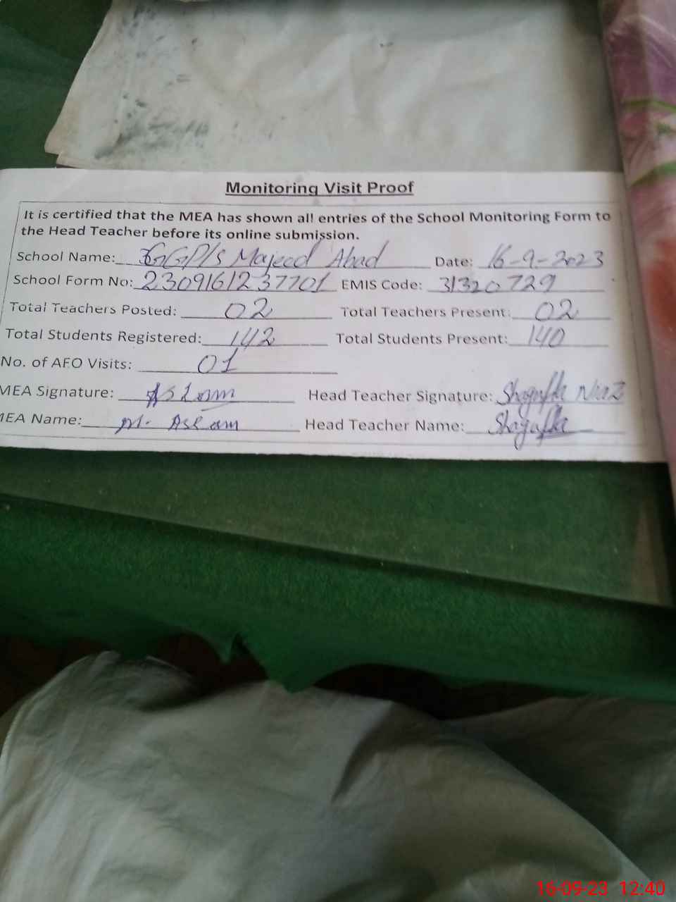 | EMIS Code: 31320729 | Name of School: GGPS MAJEED ABAD | |||