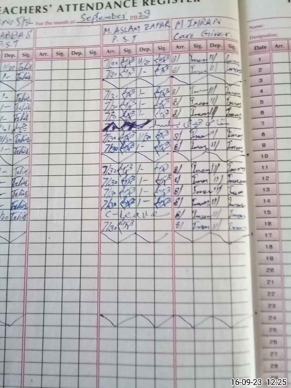 | CNIC | Full Name | Designation | R/C | Absence During Last Calender Month |