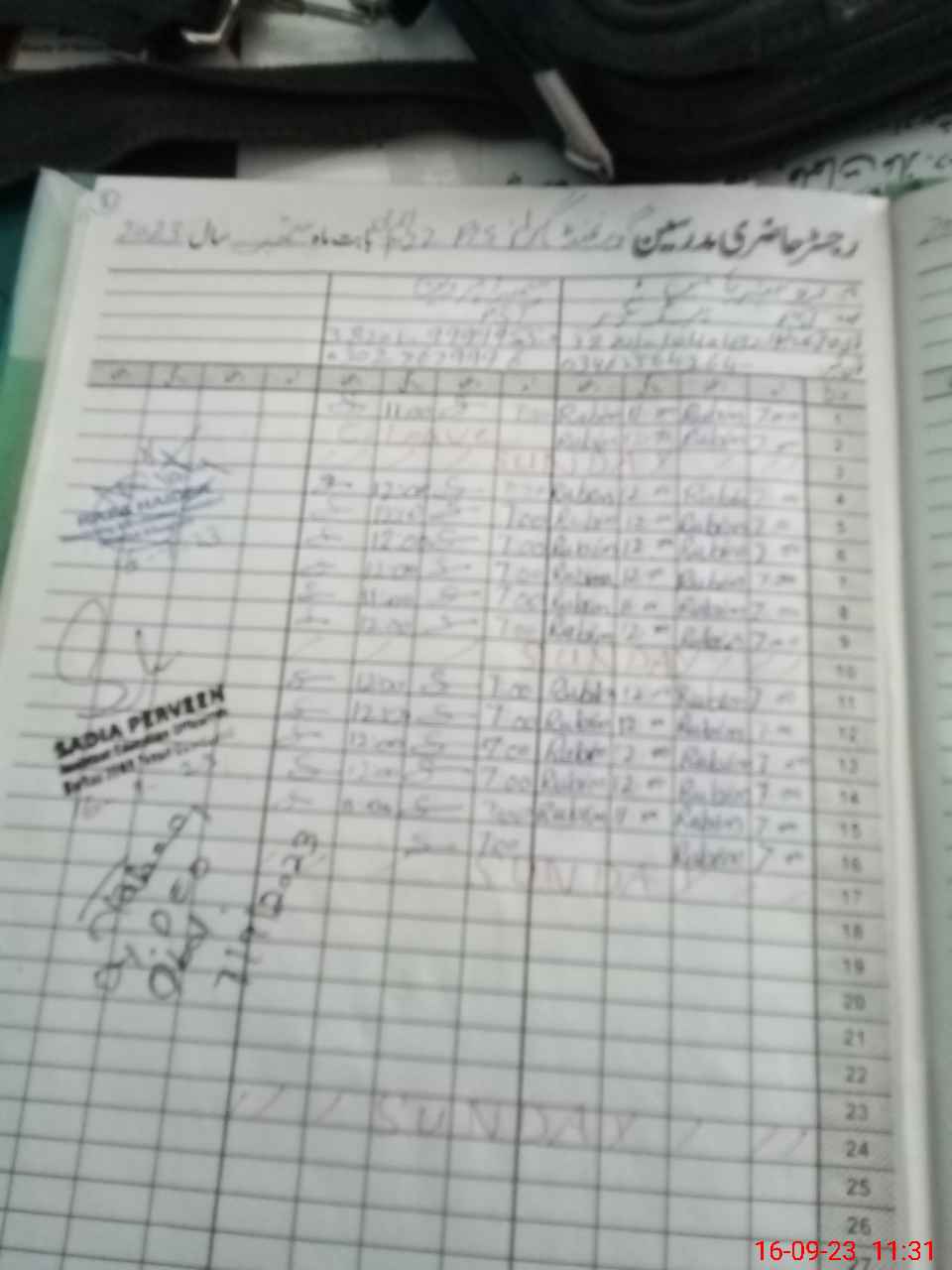 | CNIC | Full Name | Designation | R/C | Absence During Last Calender Month |