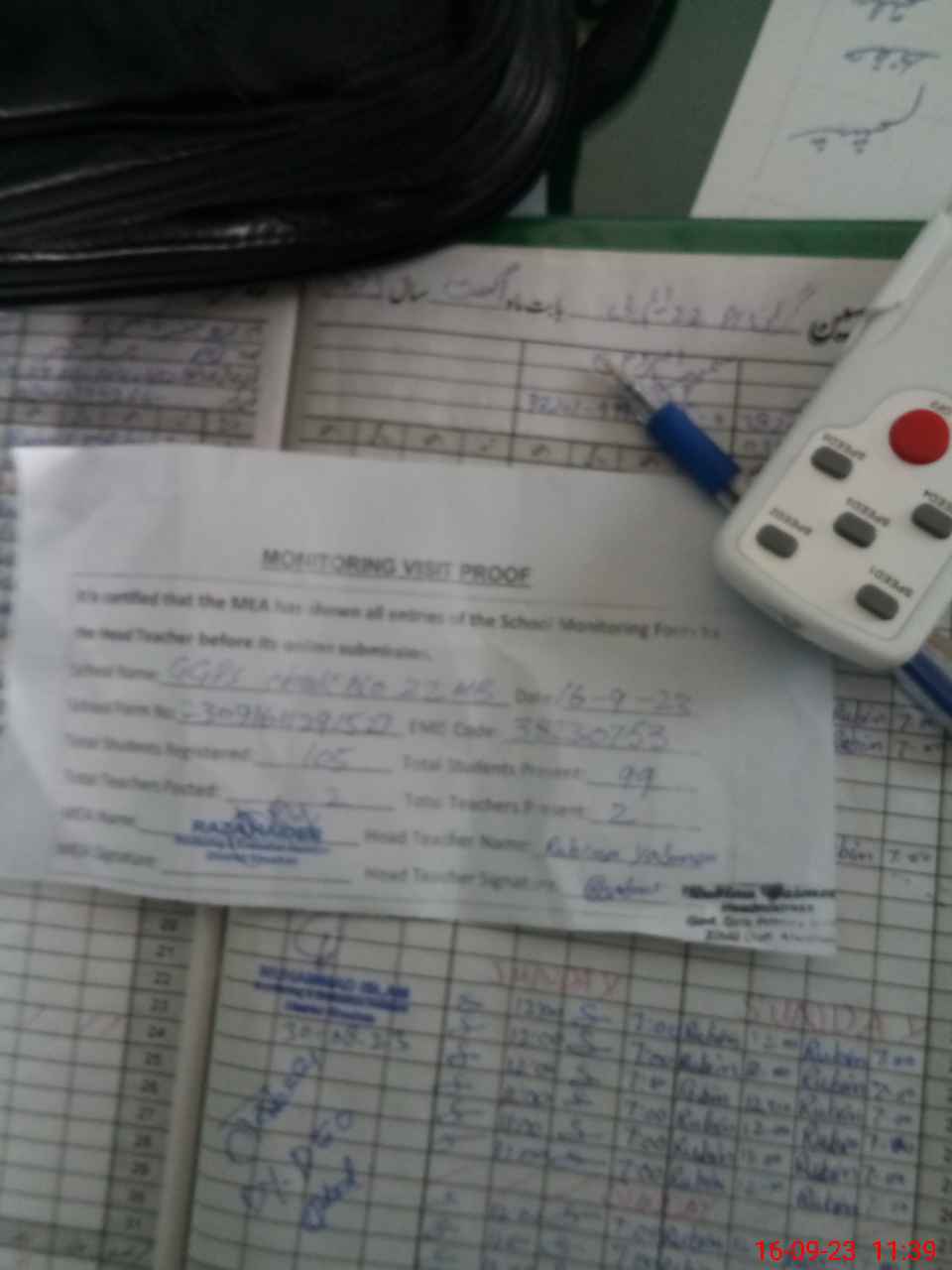 | Attendance Register | Head Teacher | MEA with School | Visit Proof |