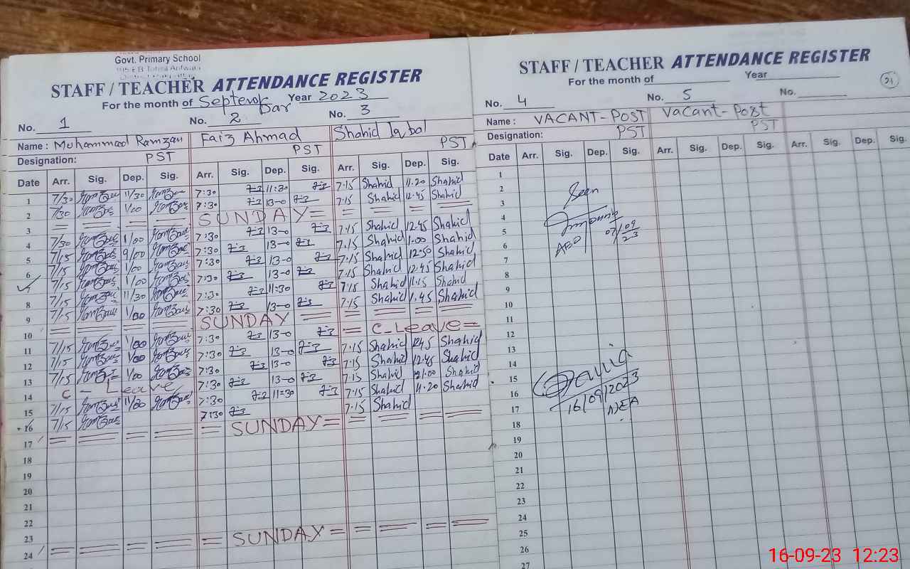 | Name: MU**** RA**** Designation: (School Headmaster's/Headmistress's) PST Phone/Cell Number: 03**** |