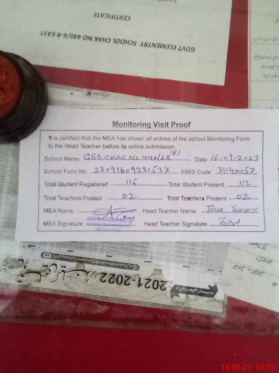 | EMIS Code: 31140057 | Name of School: GES CHAK 440/6-R EAST | |||