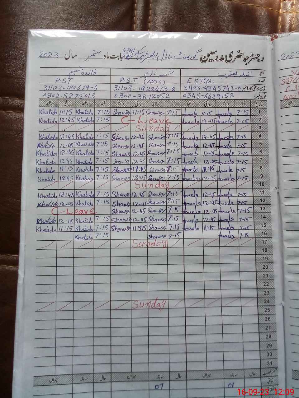 | CNIC | Full Name | Designation | R/C | Absence During Last Calender Month |