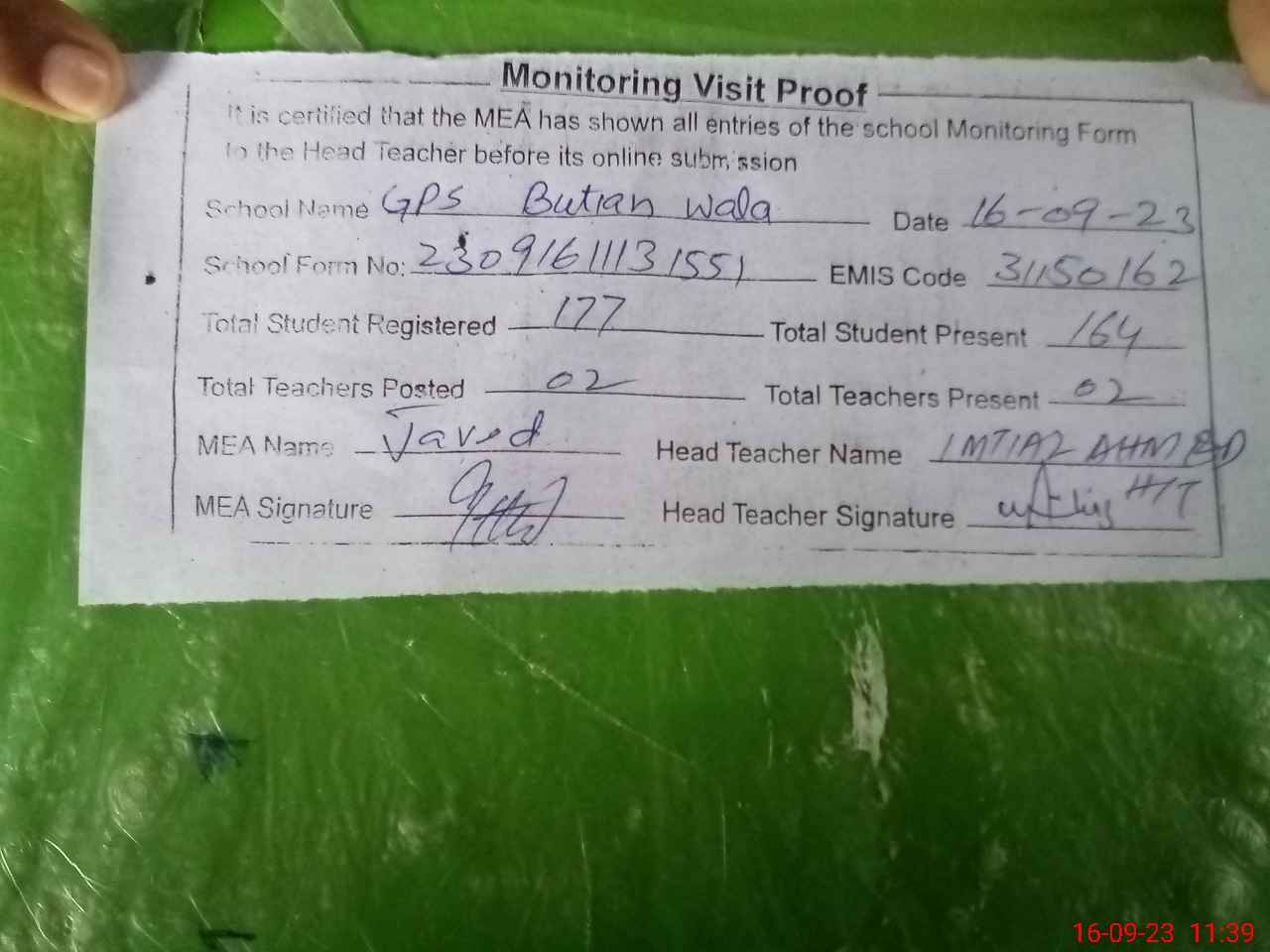 | EMIS Code: 31150162 | Name of School: GPS BUTIAN WALI | |||