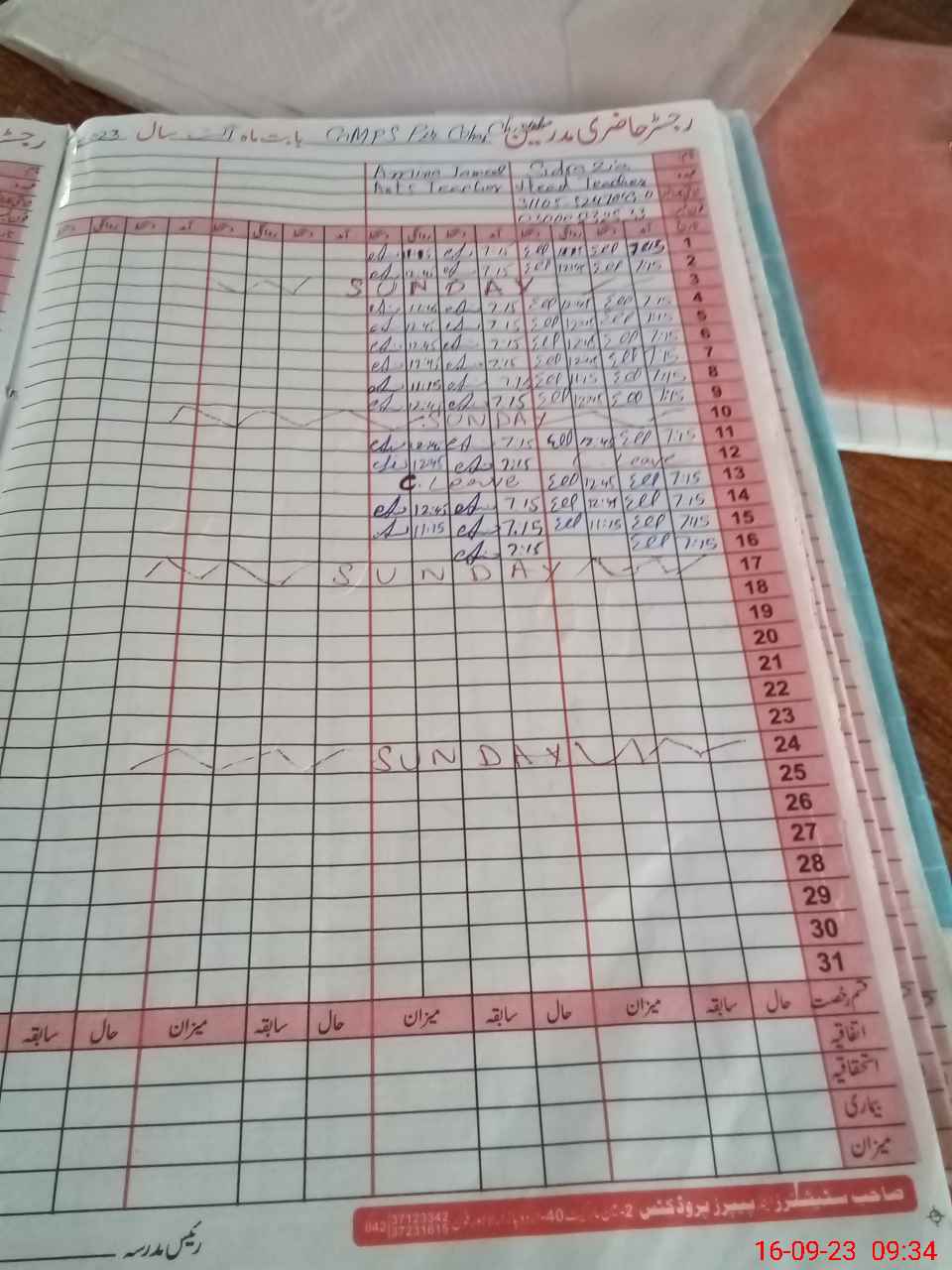 | CNIC | Full Name | Designation | R/C | Absence During Last Calender Month |