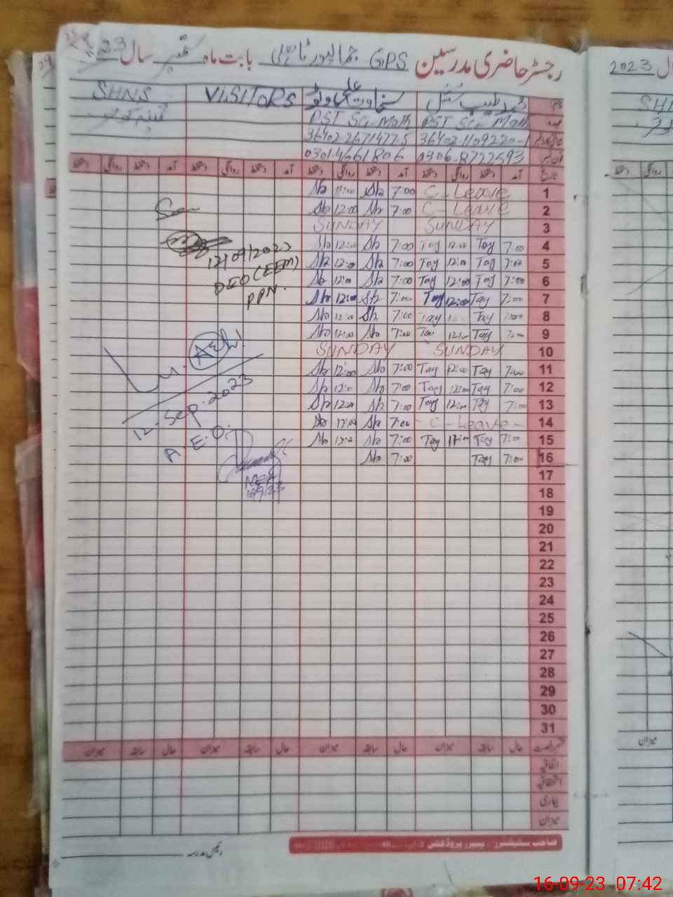 | Name: Mu**** Ta**** Designation: (School Headmaster's/Headmistress's) PST Phone/Cell Number: 03**** |
